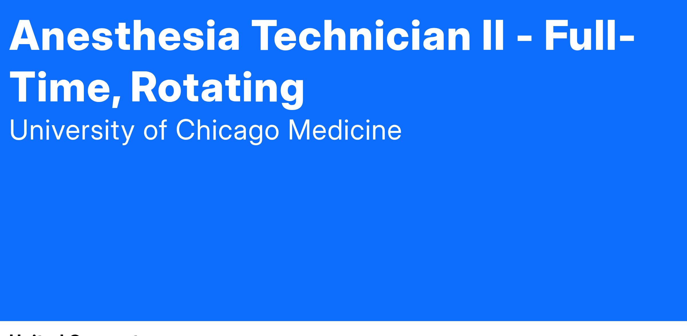 Be a part of a world-class academic healthcare system, UChicago Medicine, as an Anesthesia Technician in our Perioperative Department. Here, you will assist our Operating Room team members. This department brings the world’s most innovative approaches to patients with all conditions, from common to complex. You will have the ability to work with physicians that are constantly pushing the bounds of possibility forward, conducting groundbreaking research and providing lifesaving, personalized patient care. This position is 100% onsite opportunity. You will need to be based in the greater Chicagoland area.