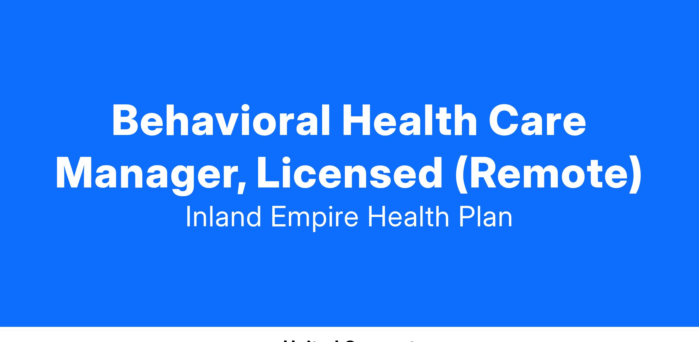 Under the direction of department leadership, this position focuses on a person-centered model of care which takes in to account the Member’s medical, behavioral, and social needs. This position provides high quality, effective care management to IEHP members ensuring coordinated continuous care. Care Management is broadly defined, and can include outreach and engagement to members, engaging members in skilled therapeutic interactions to promote health behaviors, other behavioral health interventions within scope, coordination of care, resource linkages, working with other professionals and organizations in the community to ensure quality of care for members, seamless transitions of care, and facilitating the right care and the right time for the member. As a licensed clinician, this position provides clinical expertise, clinical leadership, and clinical oversight in a variety of ways within the department. The individual in this position is to utilize their clinical expertise to support and engage Members to promote positive health behaviors, assist with coordination of care, provided resource linkages, and collaborate with other Team Members within their care team, as well as external partners, to ensure a seamless transitions of care experience. This position is expected to model behavioral health principles of relationship-based care, as well engage in promoting education and understanding of Behavioral health and its importance in whole health, to those within IEHP and in the community.
