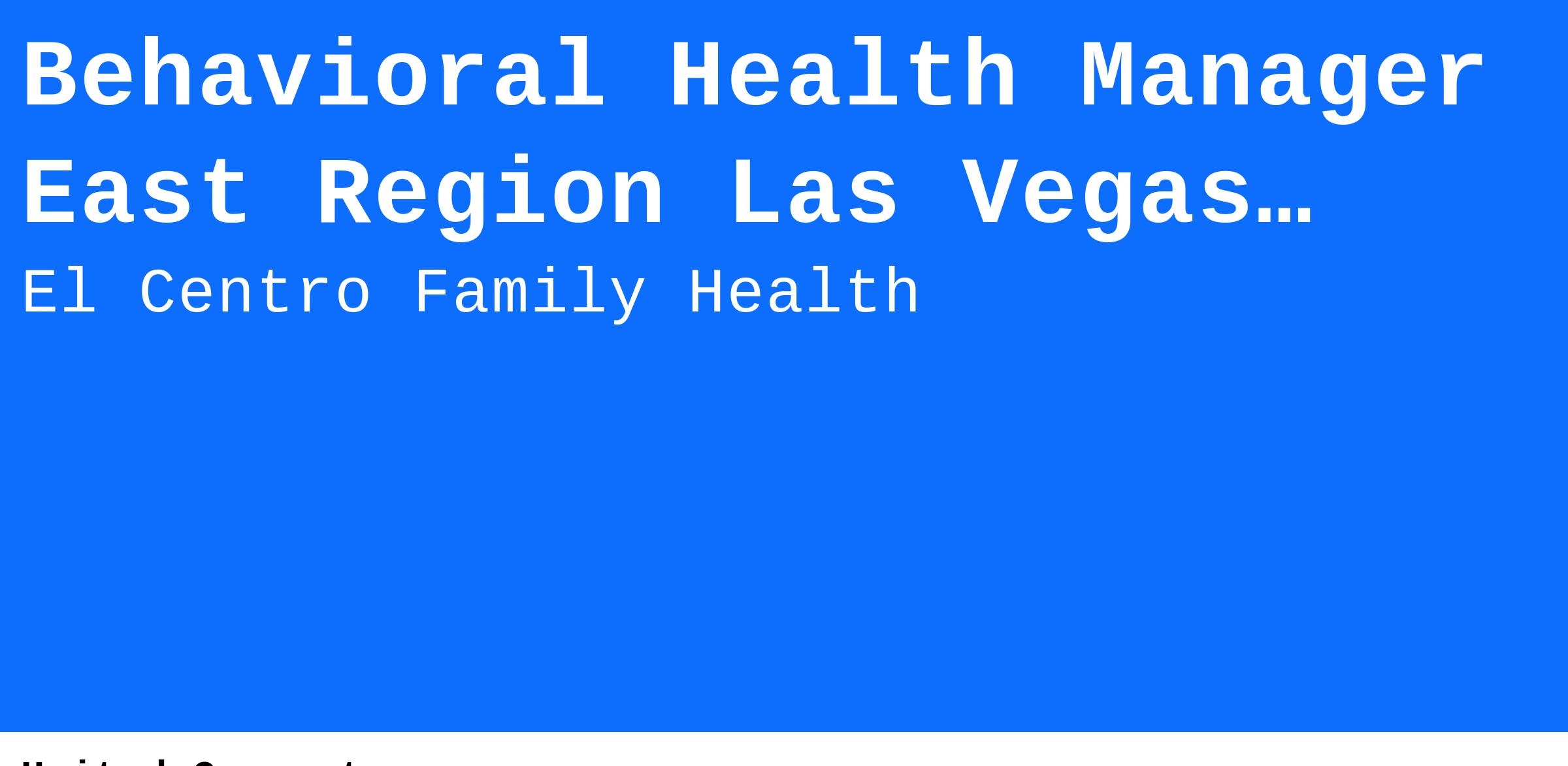 As a Federally Qualified Health Center, 501c3, our mission is to provide affordable, accessible, quality health care to the people of Northern New Mexico. Do you want to be part of an organization that is dedicated to wellness and excellence of care? El Centro Family Health is seeking a full-time Behavioral Health Manager dedicated to serving the needs of our community.