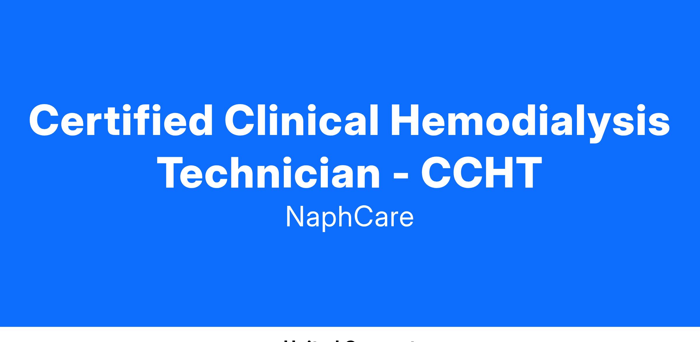 NaphCare is hiring an experienced Certified Clinical Hemodialysis Technician - CCHT at the Northern Nevada Correctional Center located in Carson City, NV. Pay rates vary based on shift, site needs, and experience. Shifts and hours vary based on coverage needs and can be discussed upon interview. PRN shifts and hours vary based on coverage needs for FT shifts and will be determined by site leadership and prn employee availability.