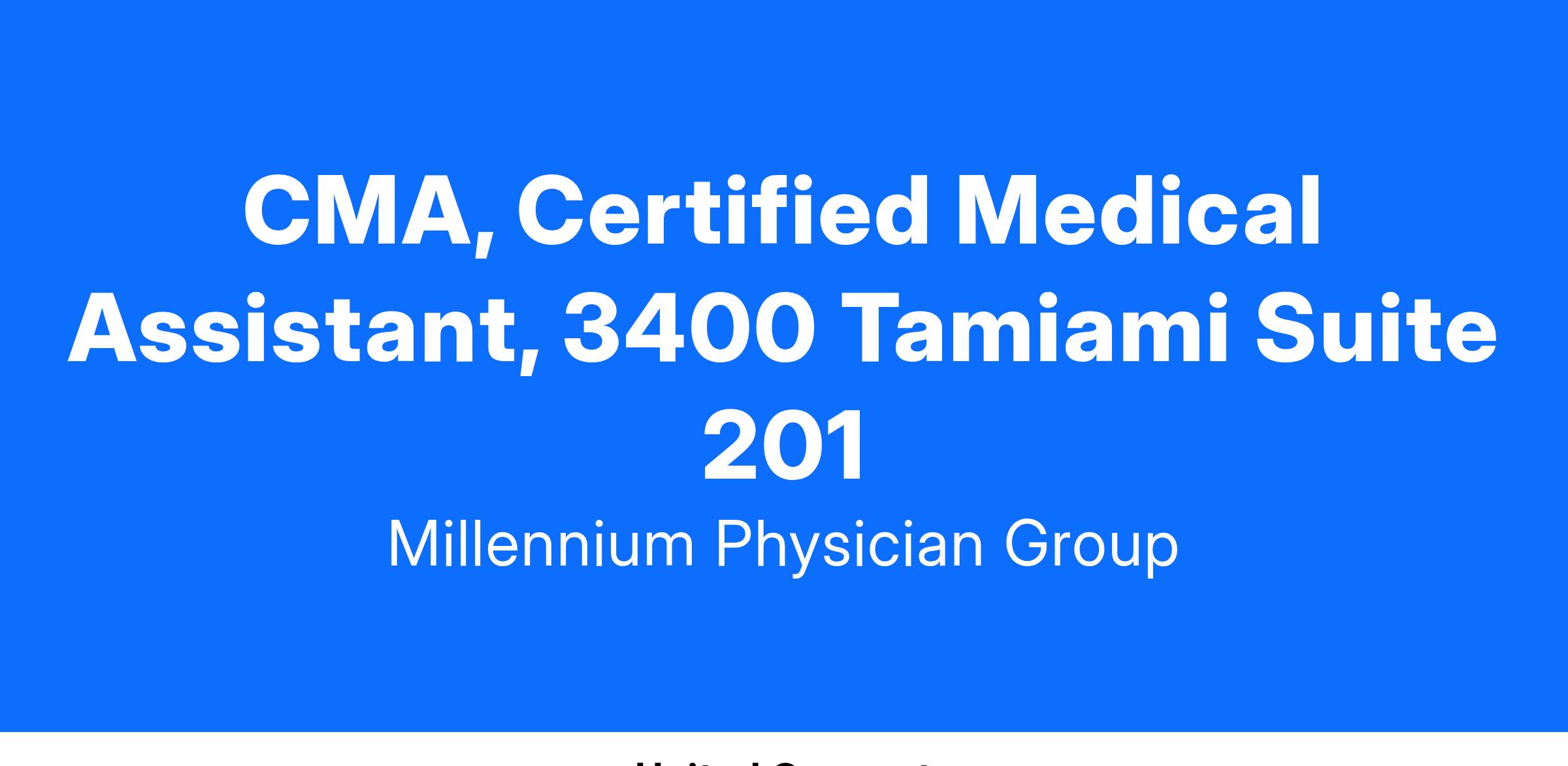 CMA, Certified Medical Assistant, 3400 Tamiami Suite 201