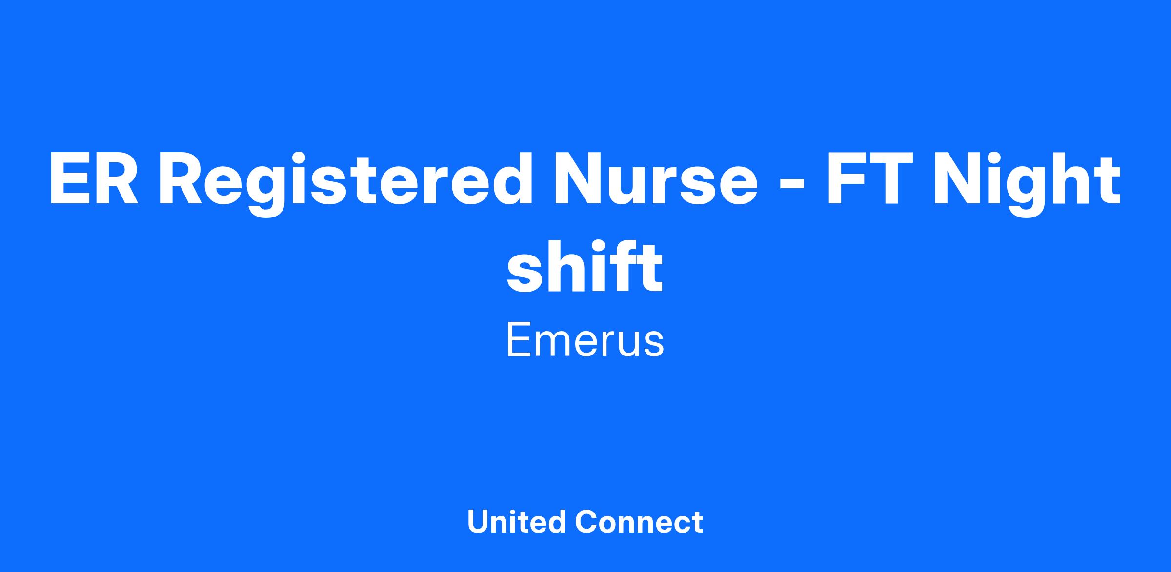 The purpose of this position is to perform the primary functions of a nurse in assessing, planning, directing, and evaluating patient care in the Emergency Room.