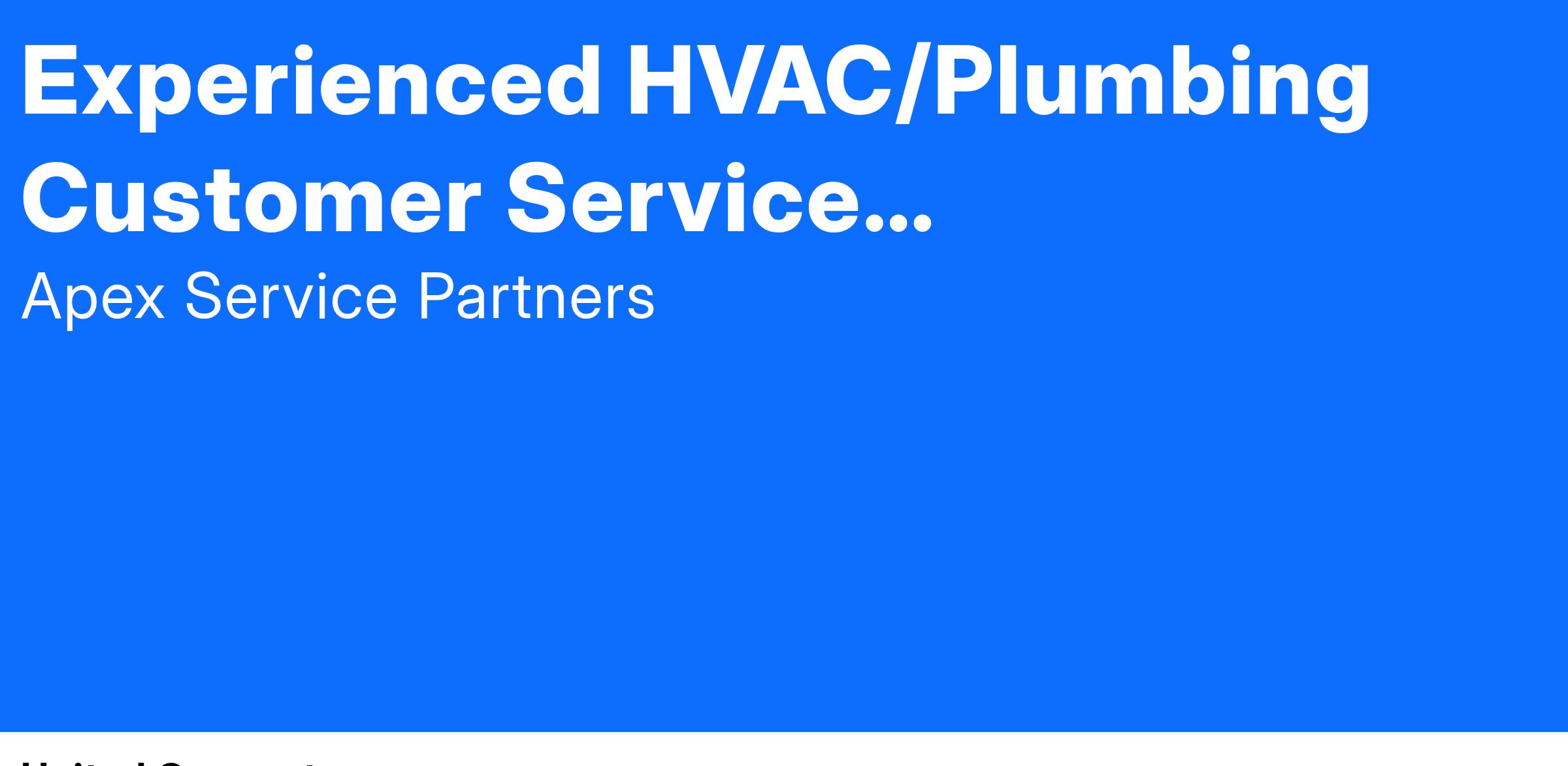 3-5 years of HVAC or Plumbing call center or customer support experience preferred
