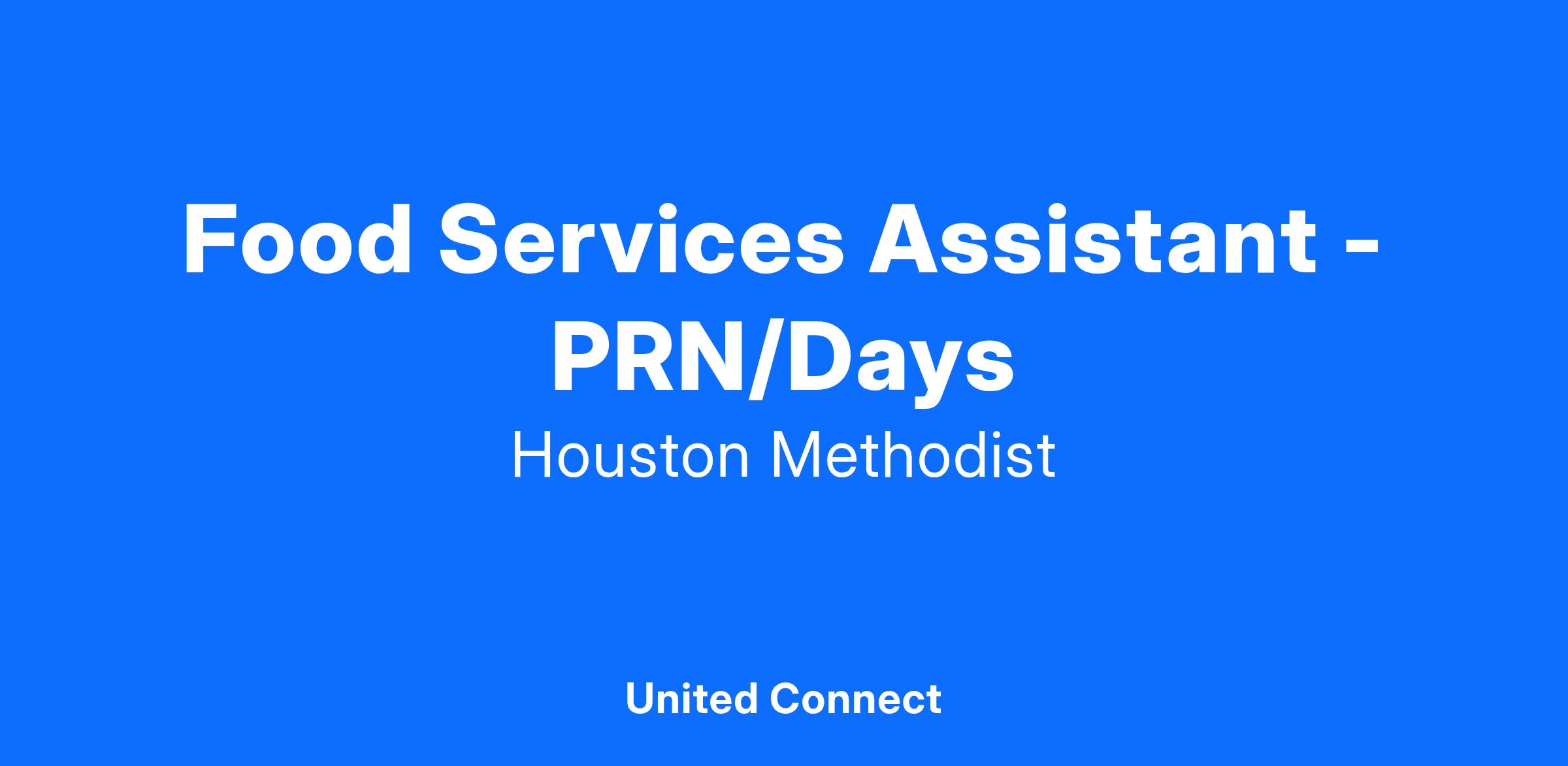 At Houston Methodist, the Food Services Assistant (FSA) position is responsible for performing a variety of duties in the kitchen, patient tray line and/or retail areas such as assisting in tray assembly for patients, simple food preparation, serving customers and set up to include replenishing stations. This position transports food carts to and from kitchen areas to patient care units and/or conference rooms in a timely manner and will perform dishwashing duties, as assigned. The FSA position communicates with peers and management regarding identified hazards in the work place, following correct procedures in cleaning of equipment and sanitation of work areas, along with special cleaning as assigned. This position follows all departmental policies and procedures and complies with relevant local Food Ordinances.