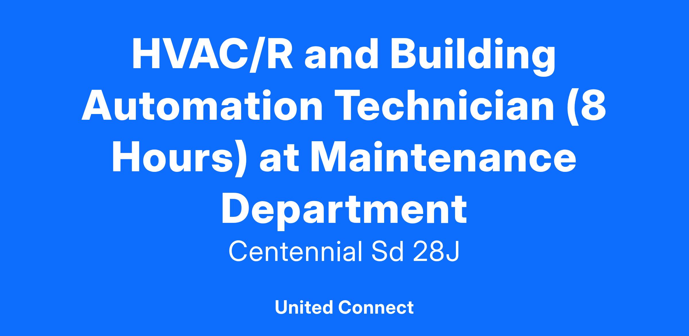 POSITION: HVAC/R and Building Automation Technician