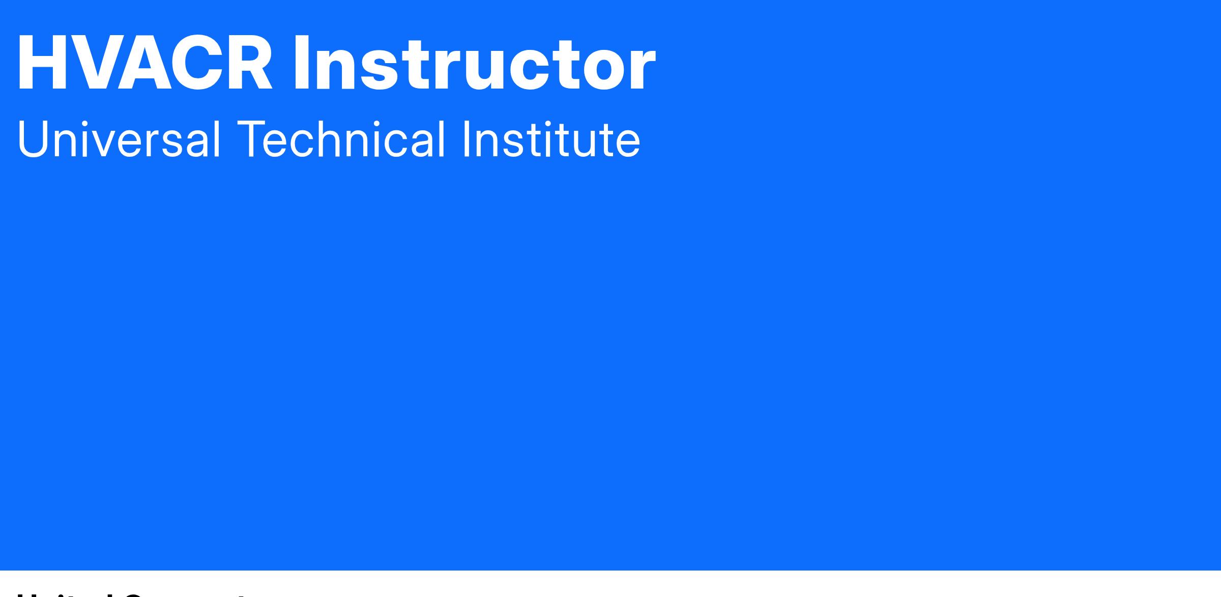 Are you an experienced HVACR Technician looking for a new and exciting challenge? Do you ever ask yourself "I wish I had the opportunity to be a mentor"? If so, we have an exciting opportunity for you to become an Instructor at Universal Technical Institute!