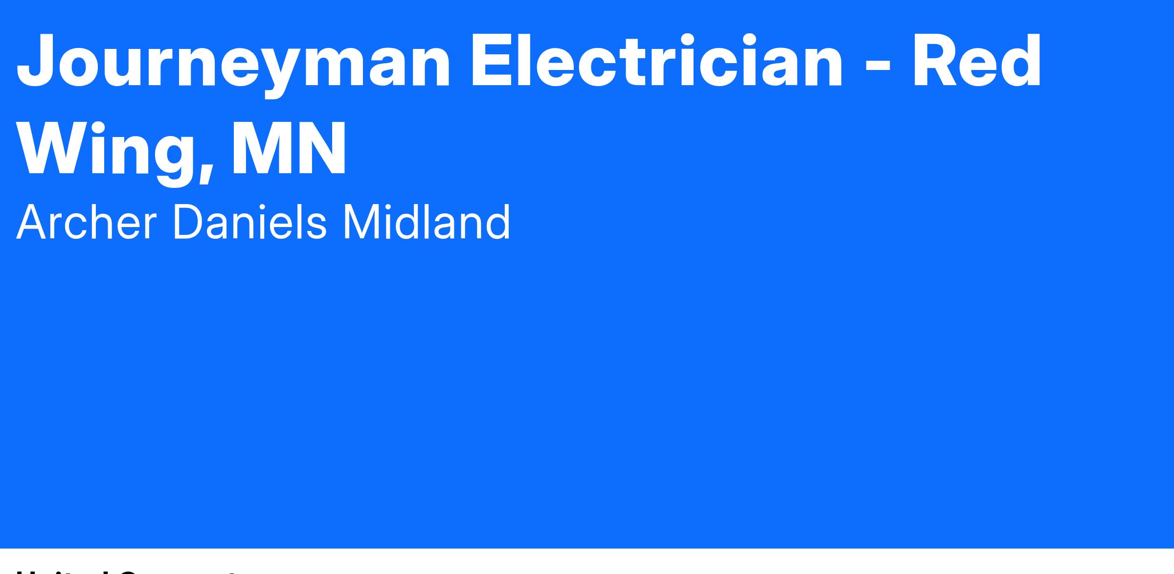 Journeyman Electrician- Red Wing, MNThis is a full-time, hourly position based in Red Wing, MN.