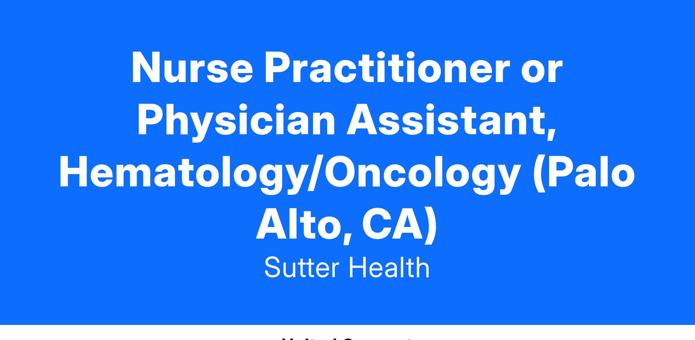 Palo Alto Foundation Medical Group is seeking a full time, certified Nurse Practitioner or Physician Assistant in Hematology/Oncology.
