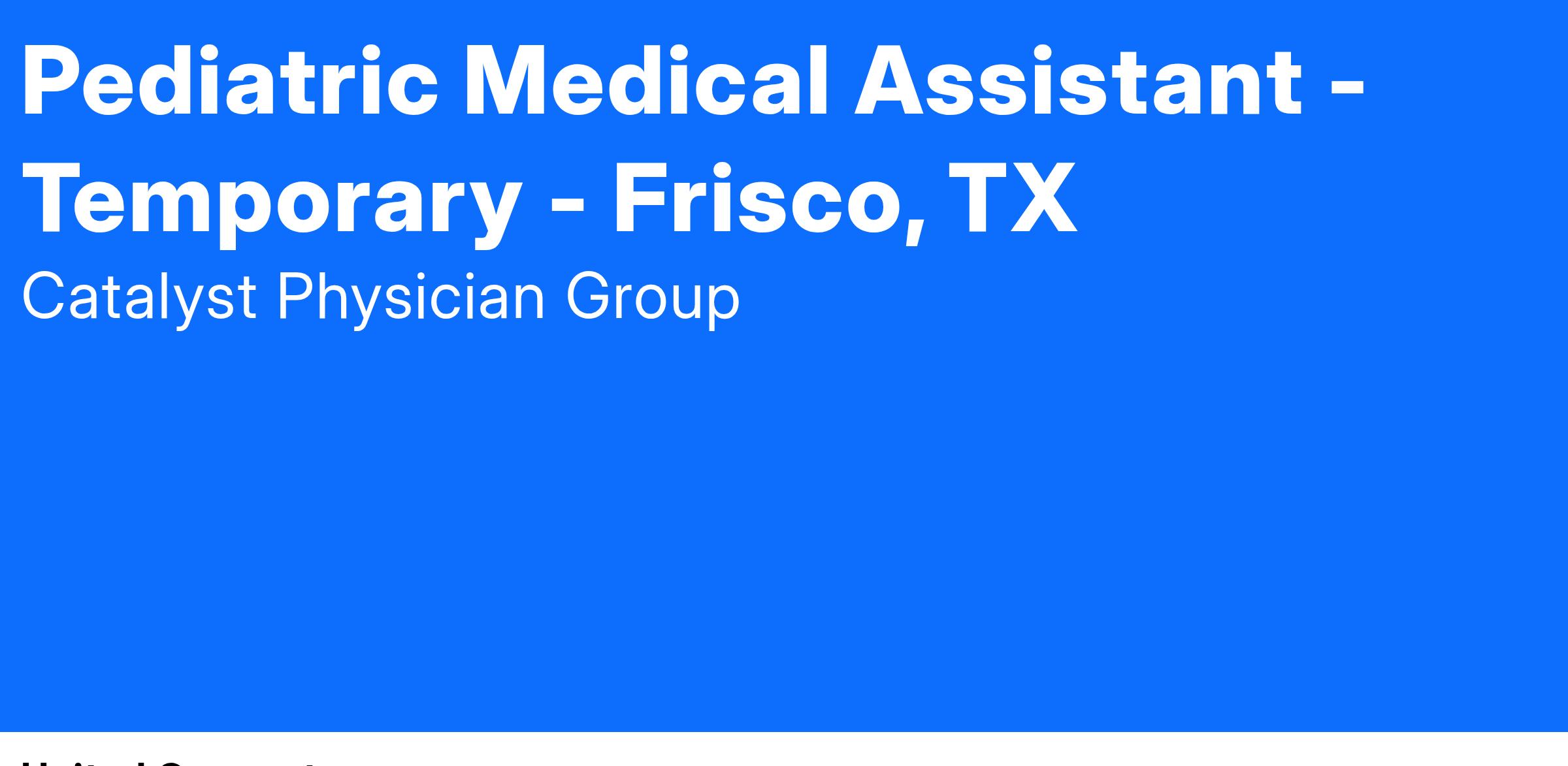 Pediatric Medical Assistant - Temporary - Frisco, TX