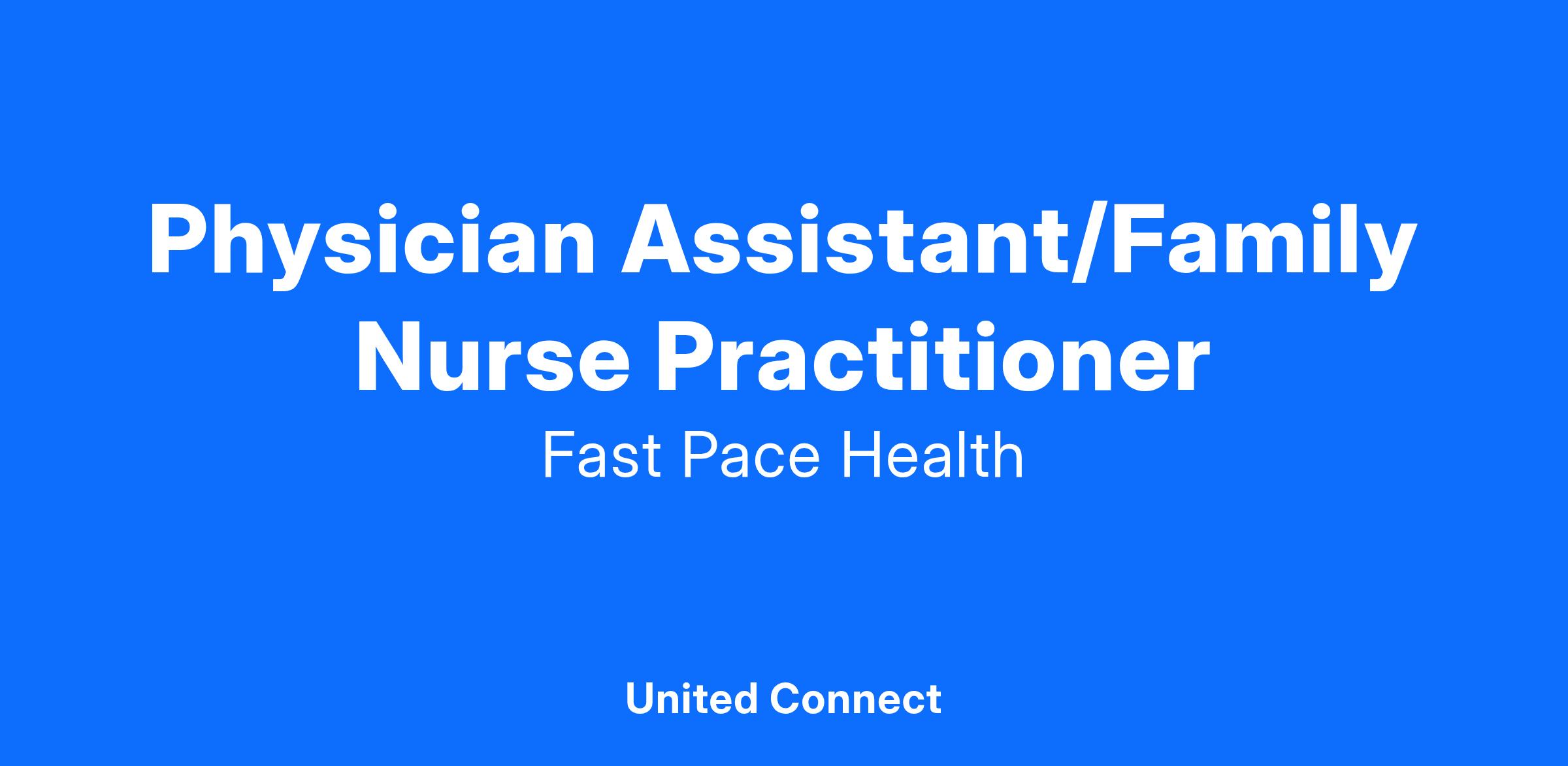 Fast Pace Health strives to provide a best in class patient experience in every interaction. We are seeking a highly-skilled, experienced Family Nurse Practitioner to join our growing team. Our ideal candidate will be deeply committed to nurturing our Fast Pace mission of teamwork, communication, empowerment and quality care in a friendly and encouraging environment.