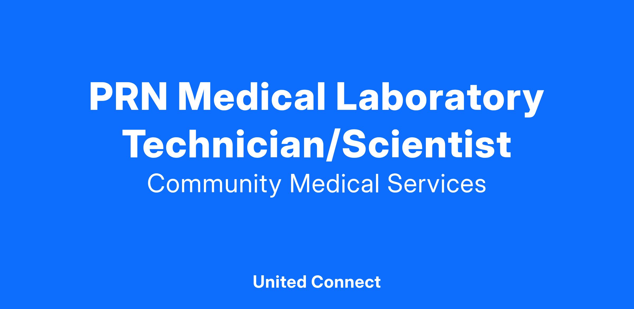 Community Medical Services (CMS) is hiring a Medical Laboratory Technician. Under the direction of the Technical Director, in conjunction with the Director of Laboratory Operations, the Medical Laboratory Technician or Scientist is responsible for specimen processing, test performance, and reporting test results, as authorized within their scope of employment.