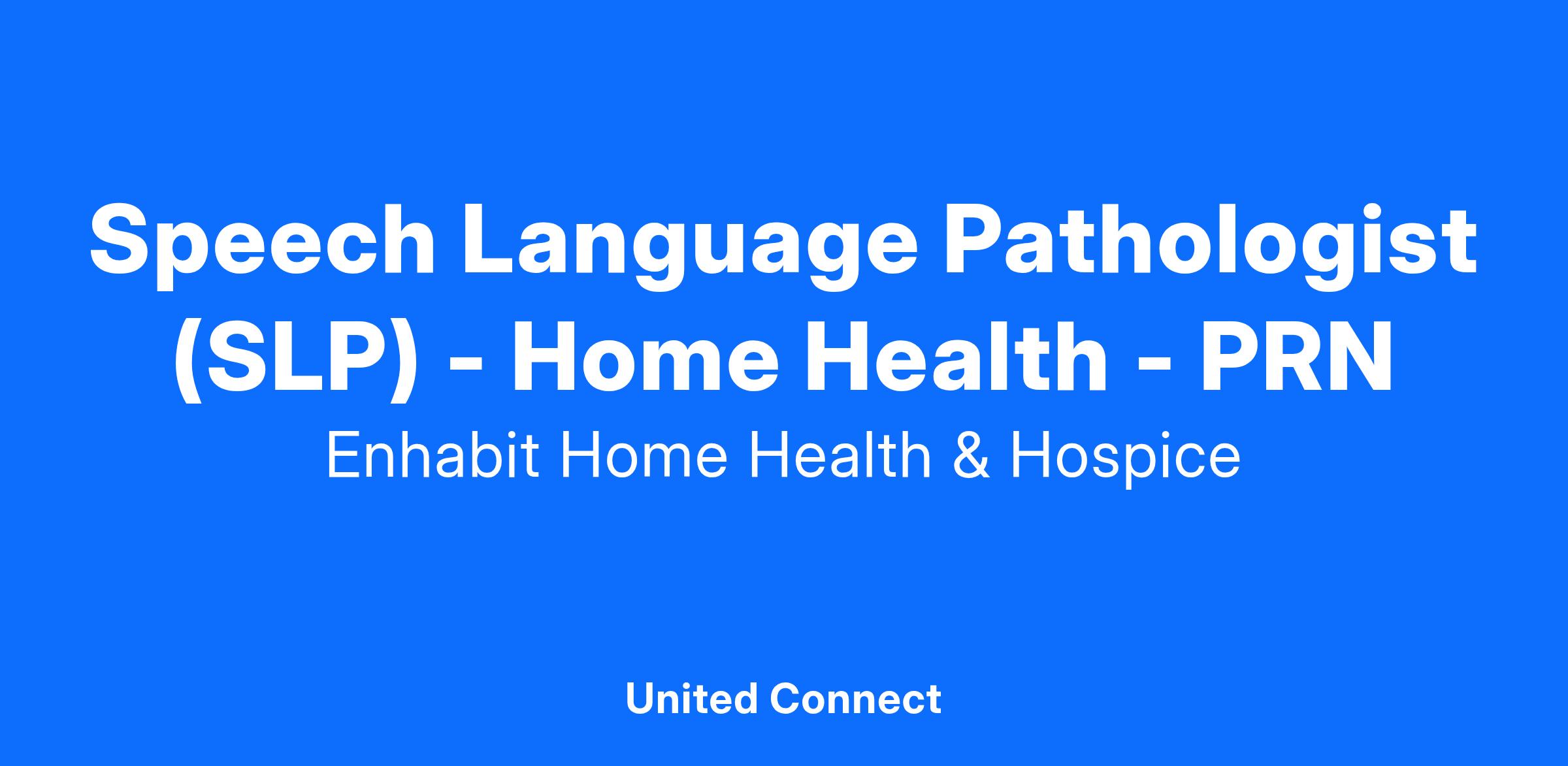 Speech-Language Pathologists (SLP) evaluate and provide skilled speech-language therapy to individuals in a home setting, under the care of an attending physician. At Enhabit Home Health & Hospice, the home setting may include single or multi-family homes, assisted living, independent living, or memory care.